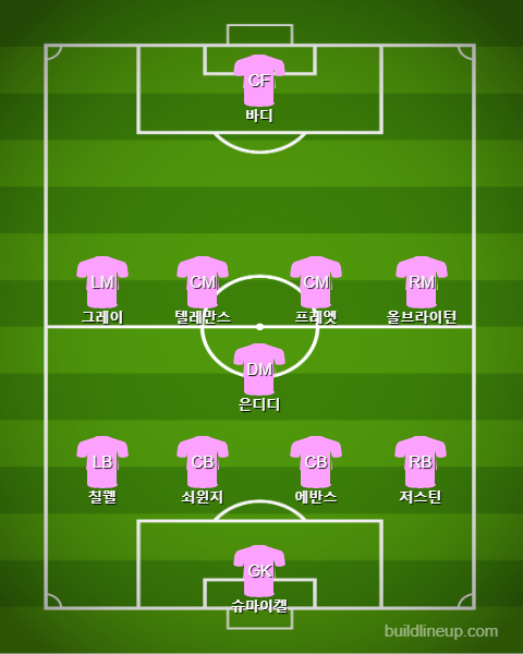 수비라인은 레스터 시티의 수비핵심인 쇠윈지를 중심으로 잘 버텨주고 있지만 공격을 제이미 바디 선수만을 믿고 있기에는 제이미 바디 선수의 폼이 완전히 회복되어 있지 않은 모습이 느껴집니다. 올브라이턴과 그레이 선수가 선발 출전할 것으로 예상되는 가운데 활발한 윙어의 모습을 보여줘야만 제이미 바디 선수가 조금은 원활한 공격작업을 할 수 있지 않을까 예상하고 있습니다.
