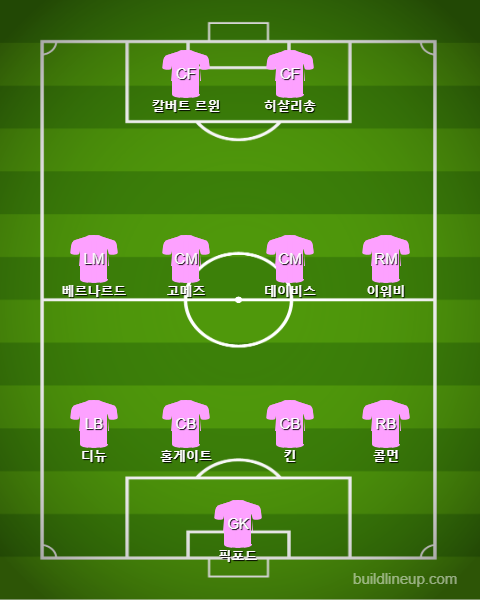 왼쪽 풀백의 디뉴 선수도 꾸준히 좋은 모습을 보여주고 있습니다. 왼쪽 풀백인대도 불구하고 현재 팀 내 어시스트 1위를 기록하고 있습니다. 현재까지 6개의 도움을 기록하고 있는 디뉴 선수입니다. 안전한 경기 운영을 위한 442 전술을 들고 나올 것으로 예상되는 에버튼입니다.