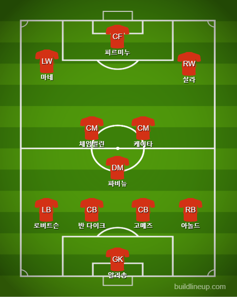맨시티 경기에서 보여준 살라의 공중볼 키핑능력과 슈팅 마무리는 왜 살라 선수가 월드클래스 선수인지를 알려줬습니다. 마네 선수가 맨시티전에서 조금은 아쉬운 집중력을 보여줬습니다. 평소에 하지 않던 트래핑 실수와 전체적인 경기 시야가 좋지 않아 보였습니다. 리버풀은 이번에도 반 다이크 선수가 선발 출전하여 수비의 중심을 잡아줄 것으로 예상됩니다. 상대는 강등권 팀인 아스톤 빌라이기 때문에 어느 정도 안정된 경기 운영을 할 수 있을 것으로 보입니다.