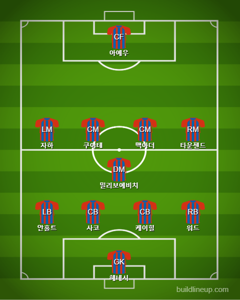 팀 내 1위 어시스트를 기록하고 있는 맥아더 선수와 자하 선수의 공격 진영에서의 확실한 판단이 필요한 크리스탈 펠리스입니다. 이번 경기는 맥카터 선수가 맥아더 선수를 대신해서 선발 출전할 수 있기 때문에 3 선수 모두 확실한 판단의 패스로 경기를 운영해야 팀의 폼이 전체적으로 상승할 것으로 예상됩니다. 타운젠드 선수도 윙에서 아예우 선수에게 효율적인 컷백을 통한 골 루트를 만들어주는 것이 이번 경기에서 중요합니다.
