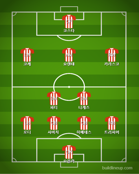 3선에 출전할 사울 니게스 선수의 활약이 돋보입니다. 경기장 전체 어디서든 볼 수 있는 사울 니게스 선수는 적절한 위치선정과 많은 활동력으로 아틀레티코 마드리드에 활력을 불어넣고 있는 선수입니다. 또한, 오른쪽 윙으로 선발 출전이 예상되는 카라스코 선수의 폼이 아주 좋은 상황입니다. 빠르고 공과 발의 거리가 아주 짧은 드리블로 상대방 선수에게 큰 압박을 줄 수 있는 선수입니다.