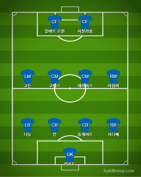 최근 에버튼의 분위기가 좋지 않은 이유 중 하나는 주전 공격수인 히샬리송 선수의 폼이 좋지 않은 이유도 있습니다. 전방에서 포스트 플레이를 잘해주지 못하고 있고 원래 장점이었던 끈질기도록 수비수를 괴롭혔던 적극성도 많이 낮아진 상황입니다. 칼버트 르윈 선수는 어느 정도 역할을 준수하게 수행해내고 있습니다. 칼버트 르윈 선수와 히샬리송 선수 각각 13골, 12골을 기록하고 있는 만큼 이번 경기에서도 분명히 골을 넣을 것으로 예상됩니다.