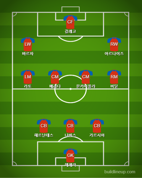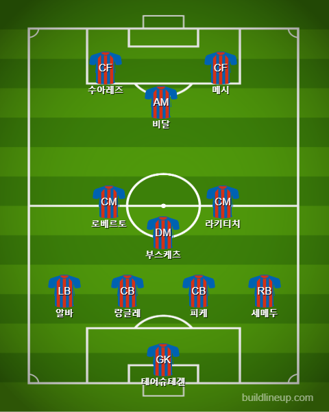 현재 뎀벨레, 그리지만 선수 모두 부상으로 이탈해있는 상황이기 때문에 남아있는 주전 공격진영 선수들의 확실한 마무리가 중요한 경기입니다. 메시 선수가 최대한 고립되지 않도록 노력하는 것이 중요합니다. 메시 선수가 고립되는 상황은 정말 찾기 힘들지만 가끔 고립되는 경기에서는 바르셀로나의 전체적인 공격 전개가 막히는 것을 볼 수 있습니다.