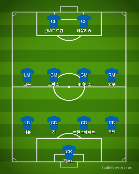 최전방 공격수인 히샬리송 선수의 분발이 필요해보이는 요즘입니다. 재개 이후에 재개 전의 폼을 전혀 보여주지 못하고 있는 히샬리송 선수입니다. 칼버트 르윈 선수만이 최전방에서 고군분투 중인 에버튼 공격진입니다.