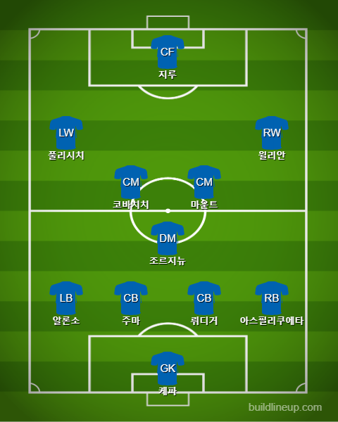 첼시의 최근 분위기는 좋은 상황입니다. 최근 프리미어리그 경기를 승리했고 가장 최근 경기인 FA컵 맨유와의 경기에서 3대 1로 승리를 했습니다. 다만 체력관리가 문제가 될 수 있습니다. 맨유와의 경기에서 확실한 전력을 들고 나왔기 때문에 리버풀과의 경기에서 체력관리가 잘 되지 않은 상태일 수 있는 첼시입니다. 첼시는 리버풀을 상대로 수비적으로 나올 확률이 높습니다. 안정적인 수비 형태를 유지한 후에 지루의 포스트 플레이를 통한 공격 운영을 할 것으로 예상됩니다.