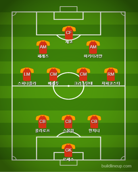로마는 스팔을 상대로 3백을 들고 나올 것으로 예상됩니다. 442 전술을 타개하기 위해서 2명의 공격형 미드필더를 2선에 배치에서 중원 싸움을 확실하게 가져가기 위해서 노력할 것으로 예상됩니다. 로마의 공격 루트는 제코 선수의 포스트 플레이로부터 진행될 것으로 예상됩니다. 제코에게 도달한 공을 제코 선수가 버텨주고 2선에 있는 공격형 미드필드의 페널티박스 침투로 공격 루트를 만들 것으로 예상됩니다. 중원 싸움이 아주 중요한 경기입니다. 팀 내 에이스인 에딘 제코 선수의 골 결정력도 중요한 경기입니다. 팀 내에서 15골을 기록하고 있는 에딘 제코 선수입니다.