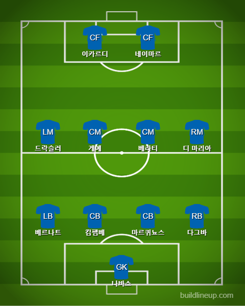 파리 생제르맹은 리옹을 상대로 442 전술을 들고 나올 것으로 예상이 됩니다. 2선과 3선 라인을 좁혀서 공격적인 팀인 리옹을 수비 조직력을 통해서 공격 운영을 잘하지 못하도록 막을 생각입니다. 파리 생제르맹은 현재 음바페의 부상으로 인해서 초비상 사태입니다. PSG의 주포인 음바페의 부재는 전술적으로 소극적인 모습을 보일 수밖에 없게 됩니다. 음바페 선수가 출전하게 되면 상대방 선수들이 뒷공간을 주지 않기 위해서 뒤로 물러나 플레이하게 되고 자연스럽게 압박을 가하기 편하게 되지만 이러한 음바페 선수의 효과를 보지 못하게 될 결승전입니다.