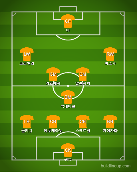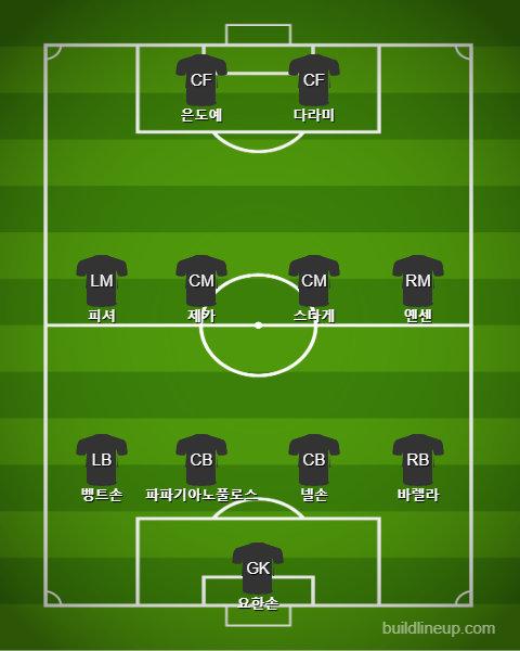 이스탄불 바샥셰히르는 코펜하겐에 비해서는 어느 정도 여유가 있는 상황입니다. 다행히도 1대 0 승리를 거둔 상태이기 때문에 어느 정도 안정감을 유지하는 포메이션을 들고 나올 확률이 높습니다. 4231 전술을 준비해올 이스탄불이지만 3선이 많은 공격 성향을 보이지는 않을 것으로 예상이 됩니다. 안정적인 경기 운영을 통한 양쪽 윙어의 순간적인 침투를 기대할 이스탄불입니다. 최전방 공격수인 바 선수의 확실한 포스트 플레이가 중요한 경기입니다.