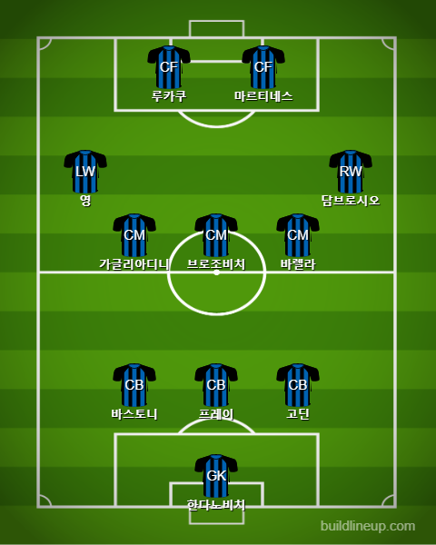 인터밀란은 시즌 내내 거의 같은 포메이션인 352 포메이션을 준비해올 것으로 예상이 됩니다. 꾸준하게 같은 포메이션을 유지하고 있기 때문에 선수들의 조직력이 상당히 좋은 상황입니다. 3백을 구성하면서 우선 안정적인 수비라인을 유지할 것으로 예상이 됩니다. 콘테 감독이 기본적으로 3백을 잘 구사하는 감독이기 때문에 선수들이 더욱 좋은 모습을 보이고 있습니다. 최전방에 투 톱으로 루카쿠와 마르티네스 선수가 선발 출전할 것으로 예상이 됩니다. 리그에서도 순도 높은 골들로 좋은 활약을 보여줬던 선수들이기 때문에 이번 8강전에서도 기대가 됩니다. 산체스 선수도 계약을 했기 때문에 더욱 안정적인 심리 상태로 경기에 뛸 수 있는 상황입니다.