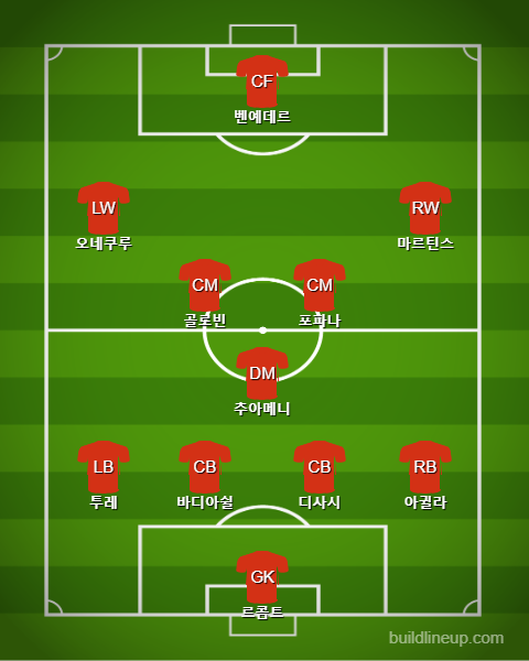 AS모나코는 랭스를 상대로 433 전술을 준비해서 나올 것으로 예상이 됩니다. 공을 뺏기거나 상대방이 공을 수비 진영, 수비 진영을 넘어서 골키퍼에게 백패스를 하는 순간 빠른 전방 압박을 통해서 상대방이 천천히, 그리고 안전하게 빌드업할 수 없도록 최전방부터 높은 적극성을 보일 것으로 예상이 됩니다. 최전방 공격수로 선발 출전이 예상되는 벤 에데르 선수의 순간 스피드와 준수한 위치 선정을 통한 골 루트를 많이 만들기 위해서 노력할 AS모나코입니다. 공을 탈취하게 될 경우 양쪽 윙어인 오네쿠루 선수나 마르틴스 선수에게 빠른 역습을 위한 패스를 내어준 후 벤 예데르 선수의 확실한 위치 선정을 통한 골 과정이 기대가 되는 선발 라인업 예상입니다.