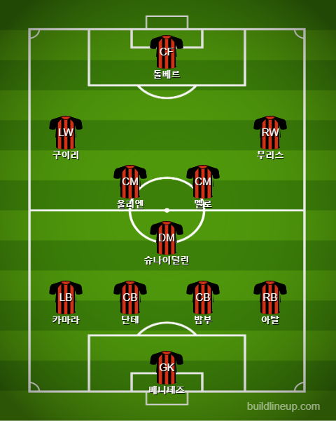 니스는 랑스를 상대로 433 전술을 준비해올 것으로 예상이 됩니다. 시작부터 빠른 압박을 통해서 상대방의 공을 최대한 빠른 시간 내에 탈취하도록 노력할 것으로 예상이 됩니다. 상대 수비 진영에서의 첫 빌드업부터 방해하기 위해서 최전방에 있는 3명의 공격수와 2명의 미드필더가 조직력에 맞게 빠른 압박을 할 것으로 예상이 됩니다. 빠른 압박을 할 것이기에 수비형 미드필더로 나올 슈나이 덜린 선수의 확실한 4백 보호가 필요한 상황입니다. 윙백이 오버래핑을 위해서 산발적으로 라인을 끌어올리기 때문에 확실하고 현명한 수비가 필요한 슈나이 덜린 선수입니다.