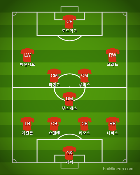 이에 맞서는 스페인은 독일을 상대로 433 전술을 준비해올 것으로 예상이 됩니다. 강한 압박을 유지하기 위해서 최전방에 있는 3명의 선수에게 빠른 압박을 요구할 것으로 예상이 됩니다. 모두 활동력이 준수한 선수들이 선발 출전이 예상되고 있기 때문에 독일이 후방지역에서 빌드업을 하기 전에 효율적인 압박을 통해서 공격을 전개시킬 것으로 예상이 됩니다. 단지 스페인이 경기를 운영하다가 뒷공간을 넘겨줬을 경우에 부스케츠 선수의 느린 발이 걱정되긴 합니다. 이번 챔피언스리그에서도 바이에른 뮌헨의 빠른 압박과 전개 속도에 적응을 하지 못하는 모습을 보여줬습니다.