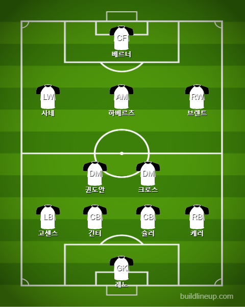 독일은 스페인을 상대로 4231 전술을 준비해올 것으로 예상이 됩니다. 안정적인 포메이션을 유지하는 것을 우선적으로 적용시킬 독일입니다. 3선의 귄도안 선수와 크로스 선수가 수준 높은 패스질과 공 간수로 4백 앞에서 탄탄한 조직력을 보여줄 것으로 예상이 됩니다. 독일은 기본적으로 전방에서 빠른 전개를 하기 위해서 노력할 것으로 예상이 됩니다. 왼쪽 윙어의 사네 선수와 최전방의 베르너 선수의 순간적인 침투를 기대하고 있을 독일입니다. 워낙 패스 줄기가 좋은 선수들이 즐비해 있는 독일이기 때문에 뒷공간이 많이 생길수록 높은 파괴력을 보여줄 수 있습니다.
