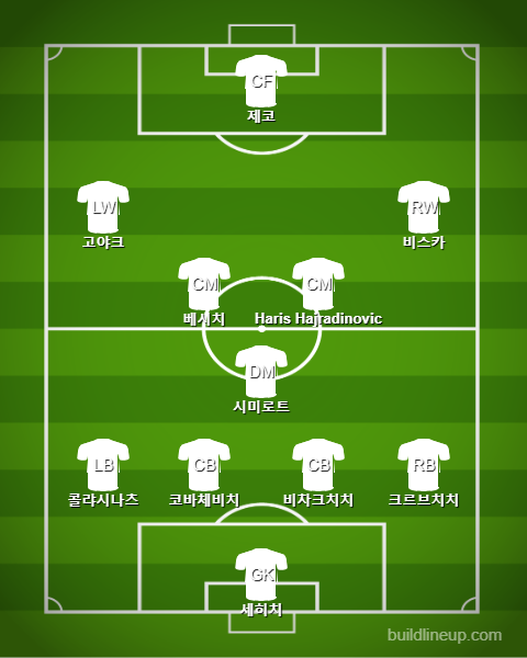 보스니아도 이탈리아와 마찬가지로 433 전술을 준비해올 것으로 예상이 됩니다. 이탈리아에 비해서 전력상 아래인 것은 맞지만 뒤로 물러나서 경기를 할 것으로 보이지 않습니다. 오히려 맞불 작전을 통해서 이탈리아를 당황하게 만들 것으로 예상이 됩니다. 이 공격의 전개의 핵심은 에딘 제코 선수입니다. 에딘 제코 선수는 양발을 준수하게 다 사용하고 큰 키로 아주 좋은 포스트 플레이 역할을 맡을 수 있는 선수이기 때문에 에딘 제코 선수를 통한 공격 전개가 꼭 필요한 보스니아입니다.