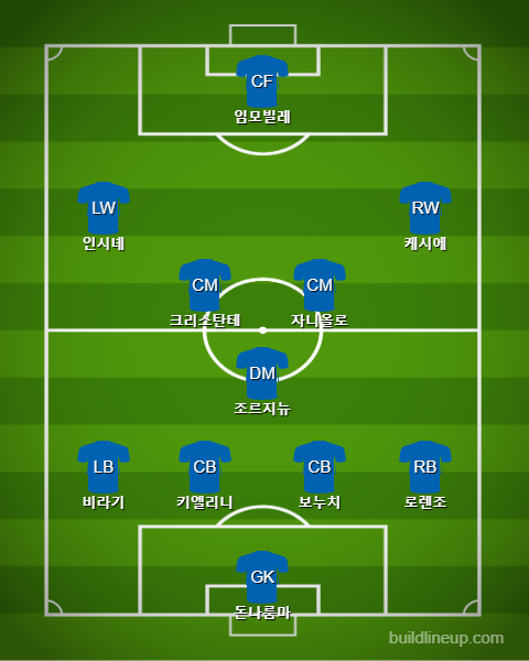 이탈리아는 보스니아를 상대로 433 전술을 준비해올 것으로 예상이 됩니다. 전력상 우위에 있다는 사실을 누구보다 더 잘 알고 있는 이탈리아이기 때문에 초반부터 빠르고 강한 전방 압박을 보여줄 것으로 예상이 됩니다. 현재 이탈리아의 공격진은 유럽에서 대표할만한 공격진입니다. 그 이유가 최근 들어 확실해진 이유는 바로 지난 시즌이었던 2019 2020 세리에 A의 독보적인 골 결정력을 보여주며 리그 골 득점 1위를 기록한 임모빌레 선수의 선발 출전이 예상되고 있습니다. 인시녜 선수의 빠르고 날카로운 킥력과 크랙 역할, 임모빌레 선수의 확실한 골감각을 보스니아 수비진이 잘 막을 수 있을지 모르겠습니다.