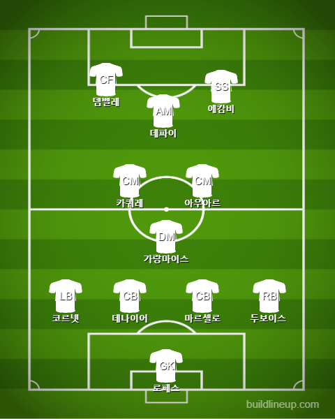 저번 시즌 챔피언스리그에서 돌풍을 일으킨 리옹입니다. 끈끈한 조직력이 장점이 리옹입니다. 리옹의 중심에는 데파이 선수가 있습니다. 공격을 전개할 때 크랙의 역할뿐만 아니라 중거리 슛, 전체적인 경기 운영까지 맡은 데파이 선수입니다. 유연한 모습을 보여주면서 상대방 수비수들이 예측하지 못하는 플레이를 최근 잘 보여주고 있습니다. 4백의 경우 데나이어 선수를 중심으로 한 단단한 조직력을 보여주고 있습니다. 4312 전술을 통해서 전방부터 강한 압박을 통한 경기 운영을 보여줄 것으로 예상이 됩니다.