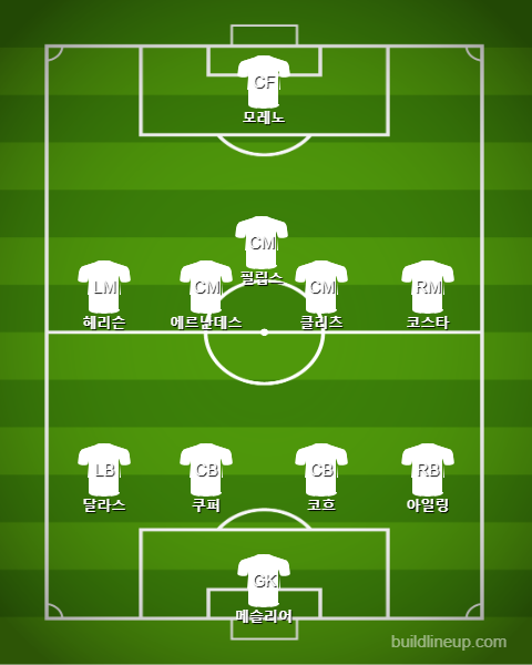 리즈는 리버풀을 상대로 451 전술을 준비해올 것으로 예상이 되고 있습니다. 현재 프리미어리그 최강의 팀이기 때문에 먼저 안정적인 수비 조직력을 끌어올리는 것을 택할 수밖에 없는 리즈입니다. 2선과 3선을 촘촘하게 유지하면서 리버풀의 공격진들이 자유롭게 공을 전개하는 것을 막기 위해 노력할 리즈입니다. 뒷공간을 많이 열어주게 되면 발 빠른 리버풀의 윙어 선수들에게 침투 공간을 줘버리기 때문에 수비라인도 상당히 뒤로 무른 채 경기를 진행할 것으로 예상이 됩니다.