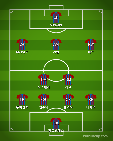 우에스카는 비야레알을 상대로 4231 전술을 통해서 안정적인 경기 운영에 초점을 맞출 것으로 예상이 됩니다. 3선의 리코 선수와 모스 퀘라 선수가 확실하게 4백을 보호해주는 것이 중요합니다. 또한 최전방으로 선발 출전이 예상이 되는 오카자키 선수의 효율적인 포스트 플레이가 필요합니다. 적극적인 공소유를 통해서 양쪽 윙어들이 하프 스페이스를 통하거나 터치 라인에서 확실한 침투가 가능할 수 있도록 뒷공간을 만들어줄 필요가 있습니다. 2선의 중심인 레알 선수의 시야와 패싱 능력이 아주 중요한 경기입니다. 중원에서 수비형 미드필더와 공격진들 사이에서 확실한 링크 역할을 해줘야만 합니다.