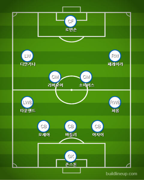 웨스트 브로미치 앨비언은 에버튼을 상대로 상당히 수비적인 전형을 먼저 보일 것으로 예상이 됩니다. 541 전술을 준비해올 것으로 예상이 됩니다. 전략상 아래에 있는 상황이기 때문에 2선과 3선을 최대한 좁혀서 에버튼의 공격 전개를 빠르게 모으는 압박을 통해서 공을 탈취할 것으로 예상이 됩니다. 공을 탈취한 후에는 전방의 미트로비치 선수에게 롱패스로 패스 후 사이드에 선발 출전이 예상되는 페레이라 선수와 디안가나 선수가 빠르게 전방 침투를 보일 것으로 예상이 됩니다.