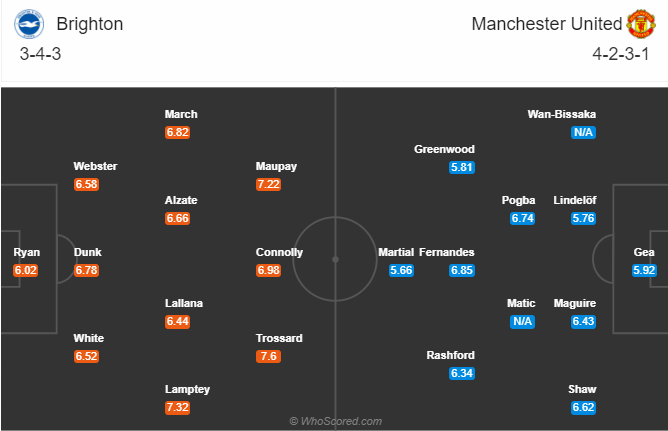 브라이튼은 맨유를 상대로 3백 전술을 준비해서 나올 것으로 예상이 됩니다. 덩크 선수를 중심을 안정적인 수비 구축을 위해서 노력할 브라이튼입니다. 최전방의 3명의 공격수를 배치하면서 3백이지만 중원 숫자 싸움을 많이 가져가는 공격적인 포메이션을 유지할 것으로 예상이 됩니다. 중원에 새롭게 영입된 랄라나 선수가 활력이 되어주기 위해서 노력하고 있습니다. 오프 더 볼이 좋은 선수이기 때문에 중원 싸움에서 밀리지 않도록 지능적인 모습들을 보여주고 있습니다. 머피 선수가 선발 출전할 것으로 예상이 됩니다. 최근 2경기 2골을 넣고 있기 때문에 최근 상승세가 아주 기대가 됩니다.