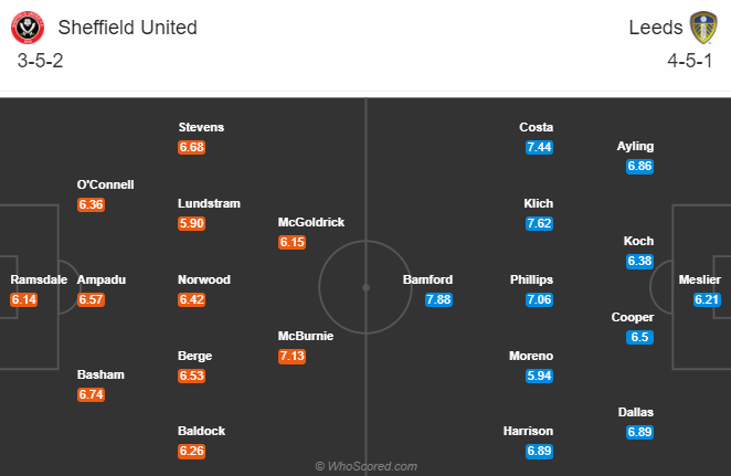 리즈는 셰필드를 상대로 451 전술을 준비해올 것으로 예상이 됩니다. 중원에 숫자를 상당히 많이 두면서 공격 전개 시 페널티킥 박스 근처로 무려 3~4명까지 상대 수비라인 브레이킹을 하기 위한 전진성을 보여주고 있는 리즈입니다. 3골이 먹힌다면 4골을 넣는다는 마인드를 갖고 있는 팀입니다. 이 중심에는 뱀포드 선수가 있습니다. 큰 키를 이용해서 확실한 포스트 플레이를 해주고 있습니다. 벌써 2경기 2골 1 도움을 기록 중입니다. 또한 오른쪽 윙어로 선발 출전이 예상되는 코스타 선수가 활발한 움직임을 가져가 주면서 2골 1 도움을 기록 중입니다. 적극적인 공격 전개가 기대되는 리즈입니다.