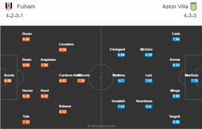 풀럼 아스톤 빌라 전체적인 전력 분석