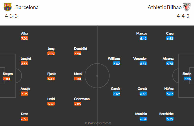 아틀레틱 빌바오는 바르셀로나를 상대로 442 전술을 준비해올 것으로 예상이 됩니다. 기본적인 전력이 바르셀로나 선수단의 비해서 비교적 낮은 상황이기 때문에 우선 2줄 수비를 통해 철저히 수비 형태를 보인 후에 역습하는 형태로 공격을 할 것으로 예상이 됩니다. 최전방에 투톱으로 선발 출전이 예상이 되는 윌리엄스와 가르시아 선수가 조금 더 분발해줄 필요가 있습니다. 현재 각자 4골, 3골을 기록하고 있지만 빌바오가 중상위권으로 올라가기 위해서는 조금 더 높은 골 결정력이 필요하다고 생각합니다. 왼쪽 윙어로 선발 출전이 예상되고 있는 무니아인 선수의 활약이 기대되는 경기입니다. 바르셀로나의 오른쪽 풀백인 데스트 선수가 공격적으로 많이 올라오기 때문에 그 공간을 무니아인 선수가 확실하게 파고든다면 공격적인 기회가 많이 나올 것으로 예상이 됩니다.