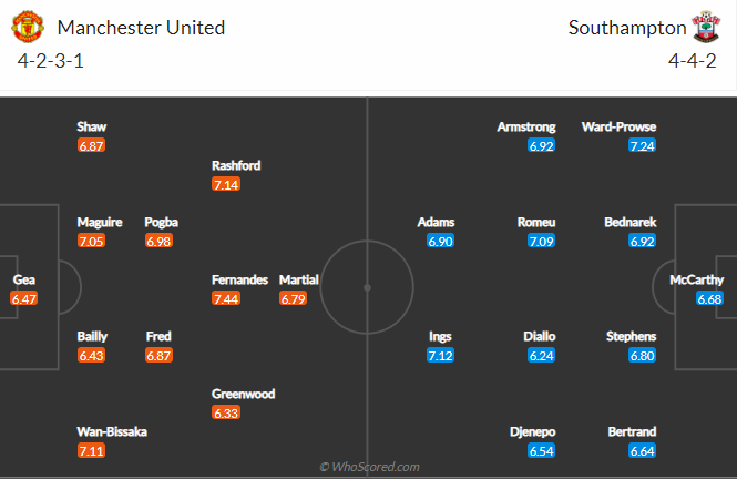 맨유 사우스햄튼 전체적인 전력 분석
