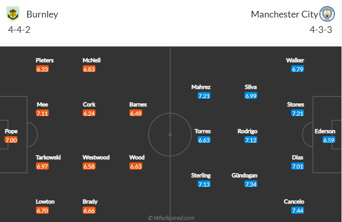 번리는 가장 최근 경기인 첼시전에서 2대 0으로 패배를 하기는 했지만 그전까지는 2연승을 달리고 있었기 때문에 순위에 비해서 현재 분위기는 나쁘지 않은 상황입니다. 번리는 맨시티를 상대로 442 전술을 준비해올 것으로 예상이 됩니다. 개인적인 판단으로 현재 프리미어리그에서 좁은 공간에서 좋은 빌드업을 하고 있는 팀은 맨시티와 리버풀뿐이라고 생각합니다. 그렇기에 번리는 확실하게 2줄 수비를 촘촘하게 해 줄 필요가 있습니다. 포켓 부근에서 2선과 4백 사이 틈을 좁혀서 공을 탈취했을 경우에 윙어와 전방에 투톱 자원이 활발한 활동력을 가져가 줄 필요가 있습니다. 팀 내 최다 득점자인 우드 선수가 4골을 기록하고 있을 정도로 팀 전체의 득점력이 상당히 떨어지고 있는 번리의 현상황입니다.